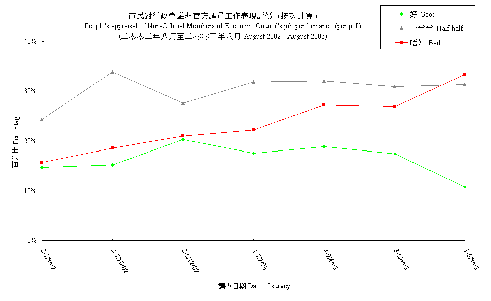 People's appraisal of Non-Official members of Executive Council's job performance (per poll)