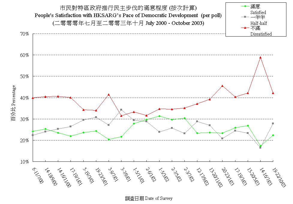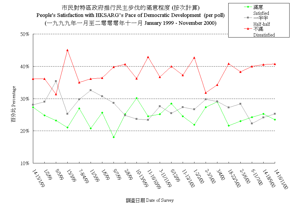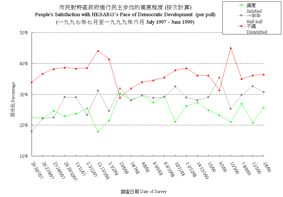 市民對特區政府推行民主步伐的滿意程度 (按次計算) People's Satisfaction with HKSARG’s Pace of Democratic Development (per poll) |